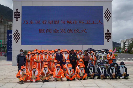 索朗平措向國(guó)策環(huán)保山南分公司一線環(huán)衛(wèi)工人們獻(xiàn)上了潔白的哈達(dá),送上了慰問金,同時(shí)對(duì)他們?cè)诿恳惶?、每一個(gè)佳節(jié)的辛勤付出表示衷心感謝!他表示,希望大家繼續(xù)發(fā)揚(yáng)“寧可一人臟、換來萬(wàn)人潔”的環(huán)衛(wèi)精神,再接再厲,以更加優(yōu)美整潔的城市環(huán)境和優(yōu)異的工作業(yè)績(jī)回報(bào)社會(huì)各界的關(guān)心和厚愛。