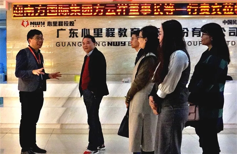 12月6日,深圳南方國際集團董事長方云祥、深圳南方國際集團董事長助理程則峰、有方國際教育教學經(jīng)理雷愛萍等一行蒞臨心里程集團總部考察交流。