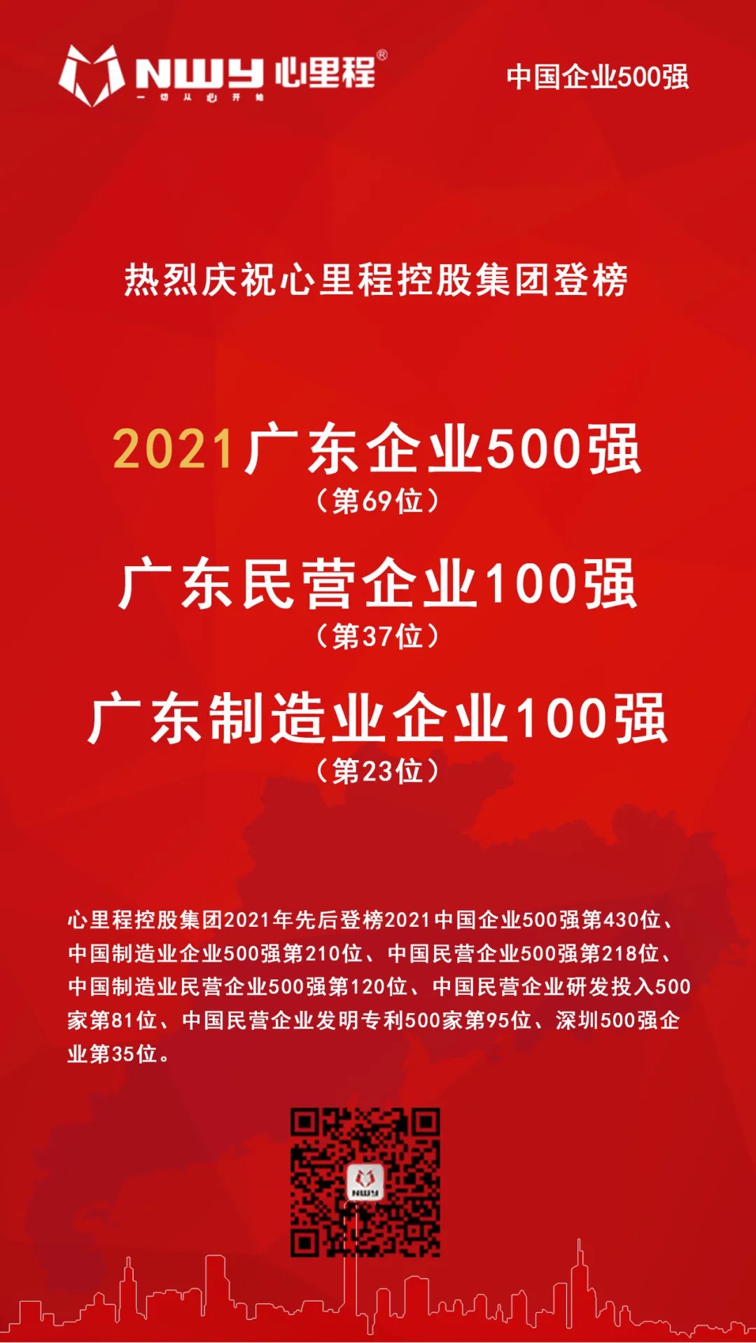 榮譽(yù)榜再刷新!心里程榮登2021廣東企業(yè)500強(qiáng)系列榜單