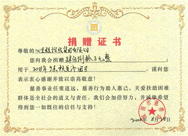 近日,心里程集團(tuán)向深圳慈善會(huì)現(xiàn)金捐款480萬(wàn)元,定向用于汕尾扶貧助困、關(guān)愛助學(xué)等項(xiàng)目。