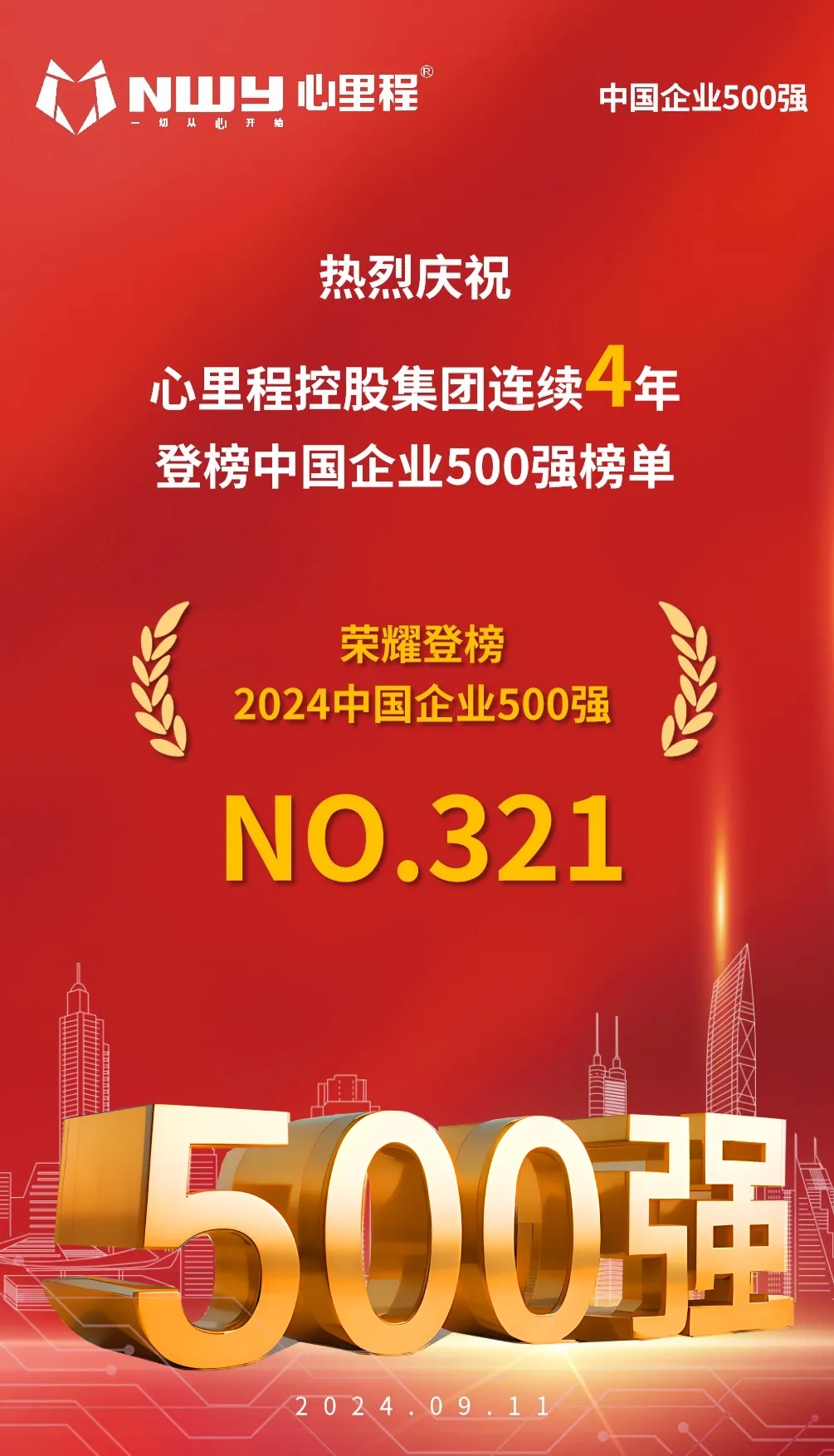 心里程集團榮登2024中國企業(yè)500強第321位(附全榜單)