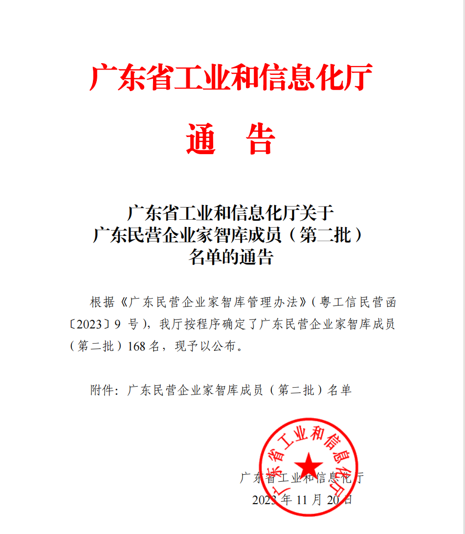 彭國遠董事長當(dāng)選廣東省工信廳【廣東民營企業(yè)家智庫成員】
