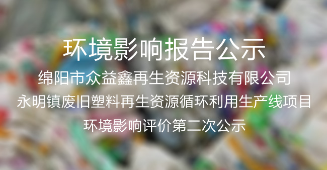 綿陽市眾益鑫再生資源科技有限公司永明鎮(zhèn)廢舊塑料再生資源循環(huán)利用生產線項目環(huán)境影響評..