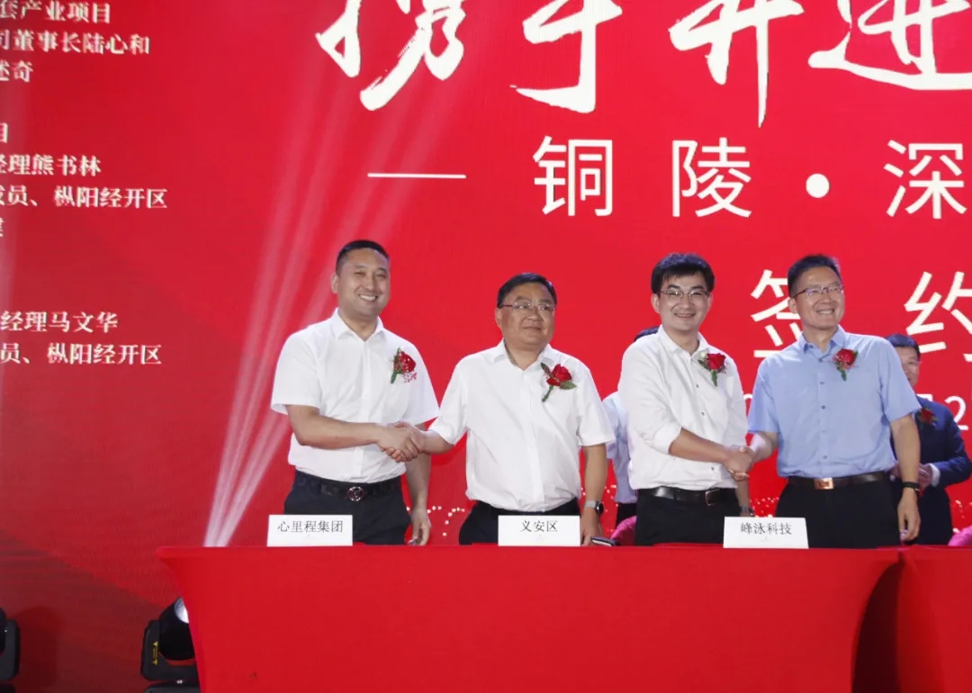8月23日,心里程集團與銅陵市義安區(qū)政府在銅陵?深圳招商推介會上正式簽署戰(zhàn)略合作協(xié)議,雙方將在區(qū)域總部經(jīng)濟、教育信息化等領(lǐng)域展開深度合作。心里程控股集團董事長彭國遠出席活動,心里程投資集團常務(wù)副總裁張玉代表集團上臺簽約。銅陵市委書記丁純,市委副書記趙振華,市委常委、經(jīng)開區(qū)黨工委書記黃化鋒,市委常委、樅陽縣委書記劉亞東,市委秘書長馬軍,義安區(qū)副區(qū)長周昌勝等領(lǐng)導見證項目簽約。