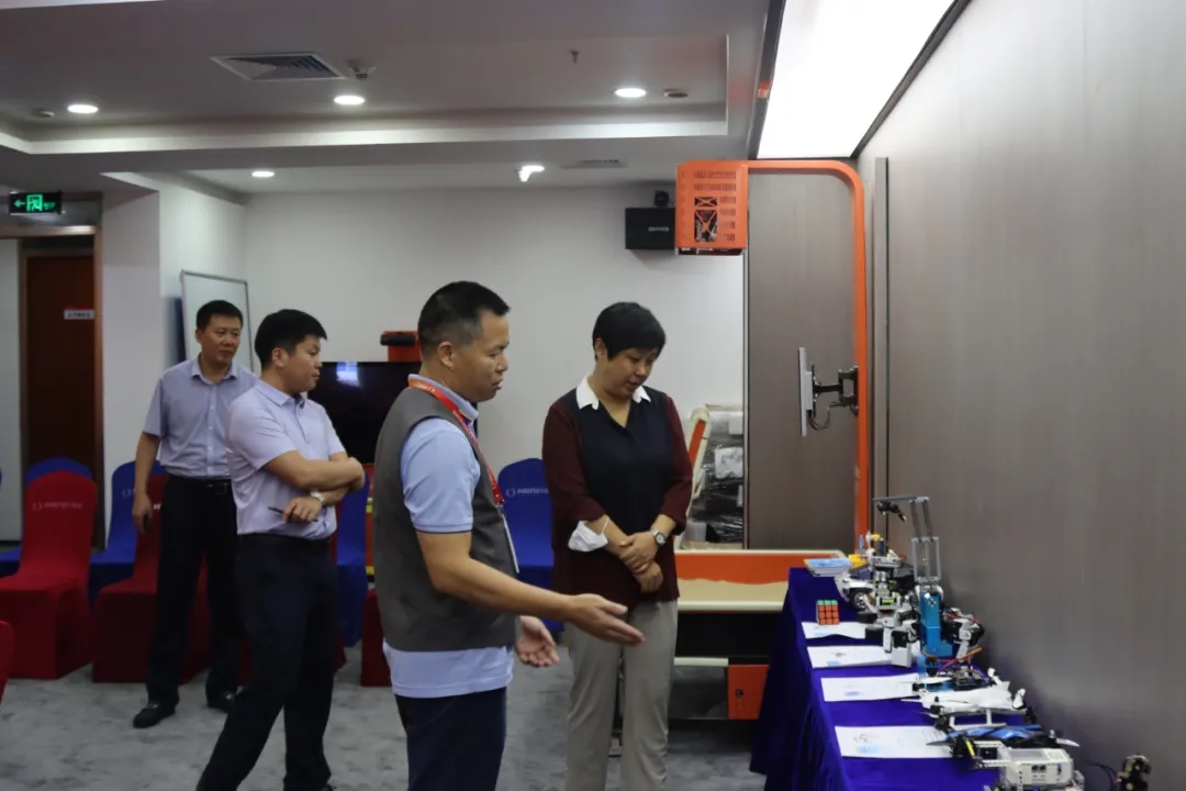 馮仁剛常務(wù)副總裁向考察團(tuán)詳細(xì)介紹了心里程集團(tuán)自主研發(fā)的“智慧校園整體解決方案”,其中包括智慧科技幼兒園和中小學(xué)教育等內(nèi)容,全面展示心里程集團(tuán)在學(xué)前教育、中小學(xué)教育、職業(yè)教育等領(lǐng)域的科研成果。尤其是智能晨檢機(jī)器人、地面投影游戲系統(tǒng)、體感互動(dòng)游戲教學(xué)系統(tǒng)、教學(xué)機(jī)器人、意念無人機(jī)、3D打印機(jī)、編程機(jī)器人等產(chǎn)品。