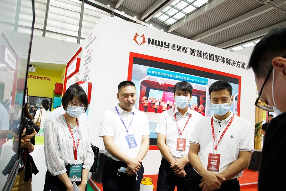 考察團(tuán)于2020第三屆深圳教育裝備博覽會現(xiàn)場心里程集團(tuán)展位參觀考察