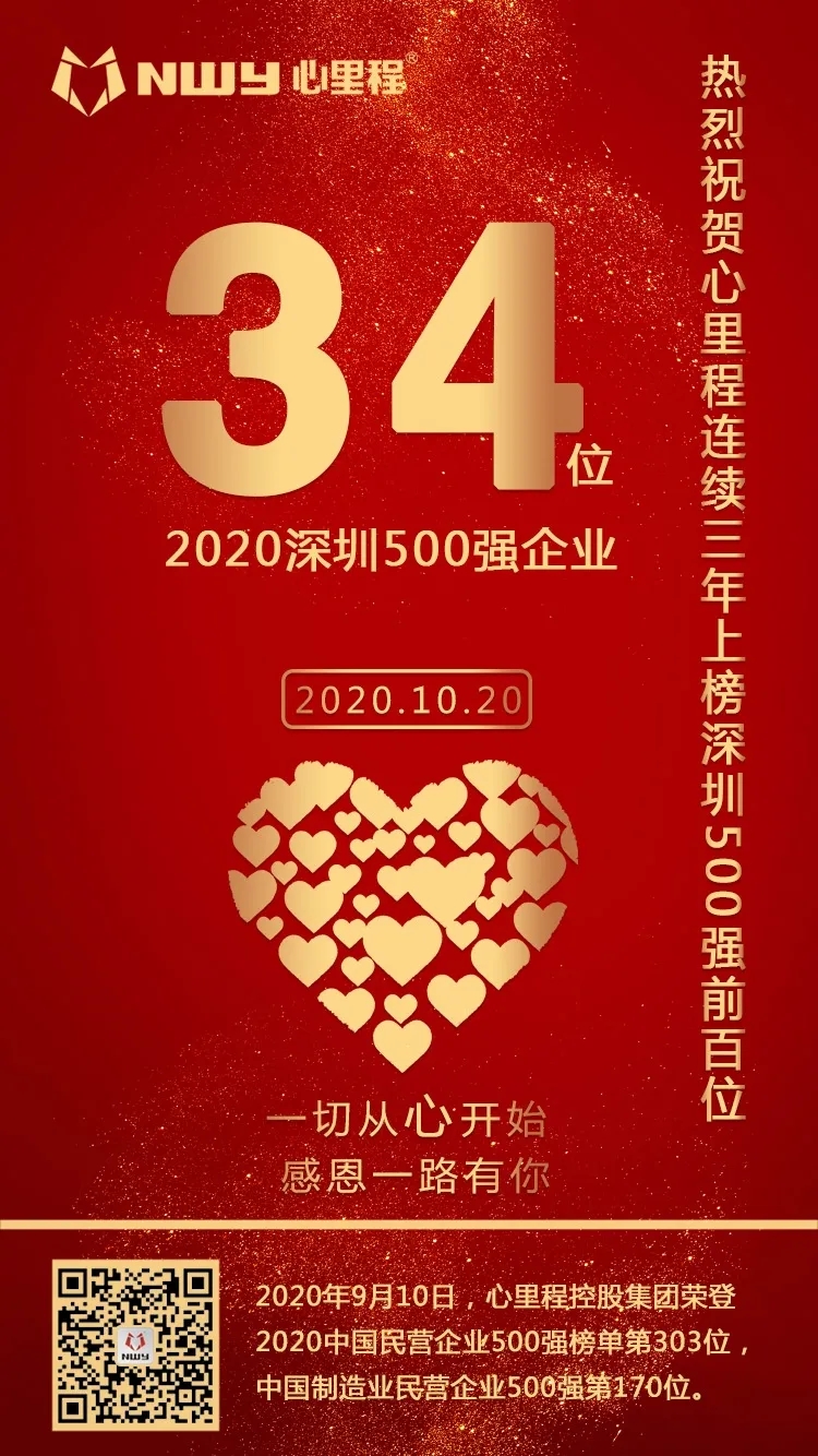 10月20日,由中國(guó)企業(yè)聯(lián)合會(huì)、中國(guó)企業(yè)家協(xié)會(huì)指導(dǎo),深圳市企業(yè)聯(lián)合會(huì)、深圳市企業(yè)家協(xié)會(huì)主辦,2020深圳500強(qiáng)企業(yè)發(fā)布暨行業(yè)領(lǐng)軍·產(chǎn)業(yè)論壇在深圳會(huì)展中心舉辦。本次論壇重磅發(fā)布2020深圳企業(yè)500強(qiáng)榜單和《2020深圳500強(qiáng)企業(yè)發(fā)展報(bào)告》,心里程集團(tuán)榮登榜單第34位,相比去年名次上升5位,這已經(jīng)是集團(tuán)連續(xù)第三年榮登該榜單前百位!