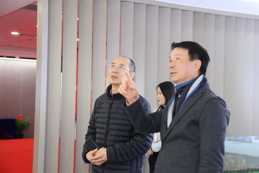 彭錦環(huán)總裁(右一)陪同鄒炎漢校長(右二)參觀心里程集團(tuán)總部