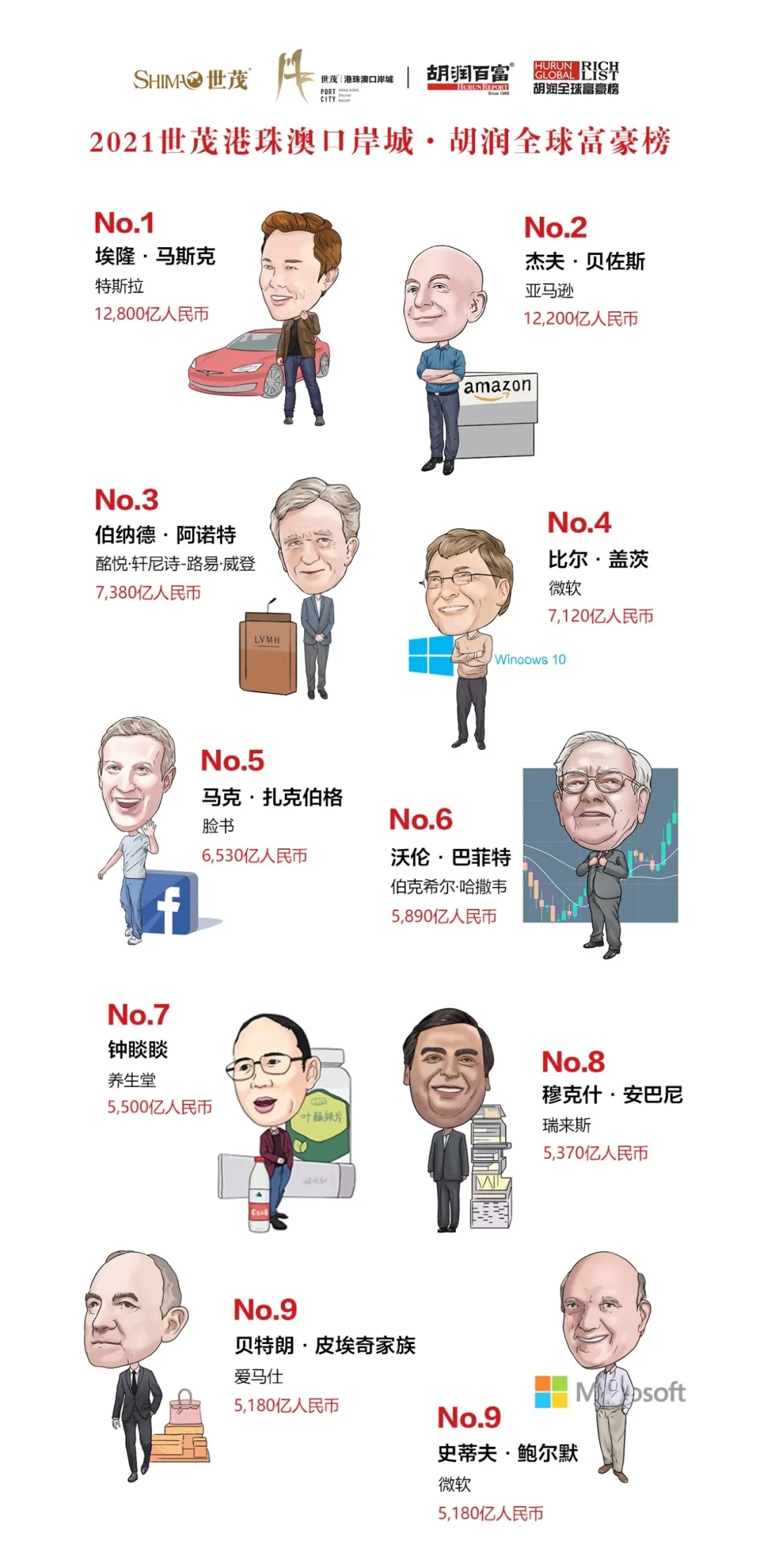 《2021世茂港珠澳口岸城·胡潤全球富豪榜》前100名