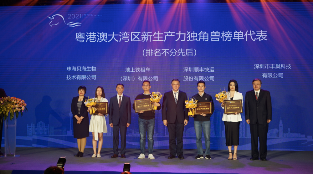論壇上揭曉了2021粵港澳大灣區(qū)新生產(chǎn)力獨(dú)角獸企業(yè)榜單