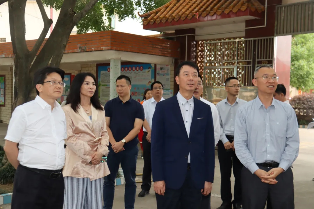 蕉嶺縣委書記陳偉明(右一)陪同彭錦環(huán)總裁(右二)參觀桂嶺學校