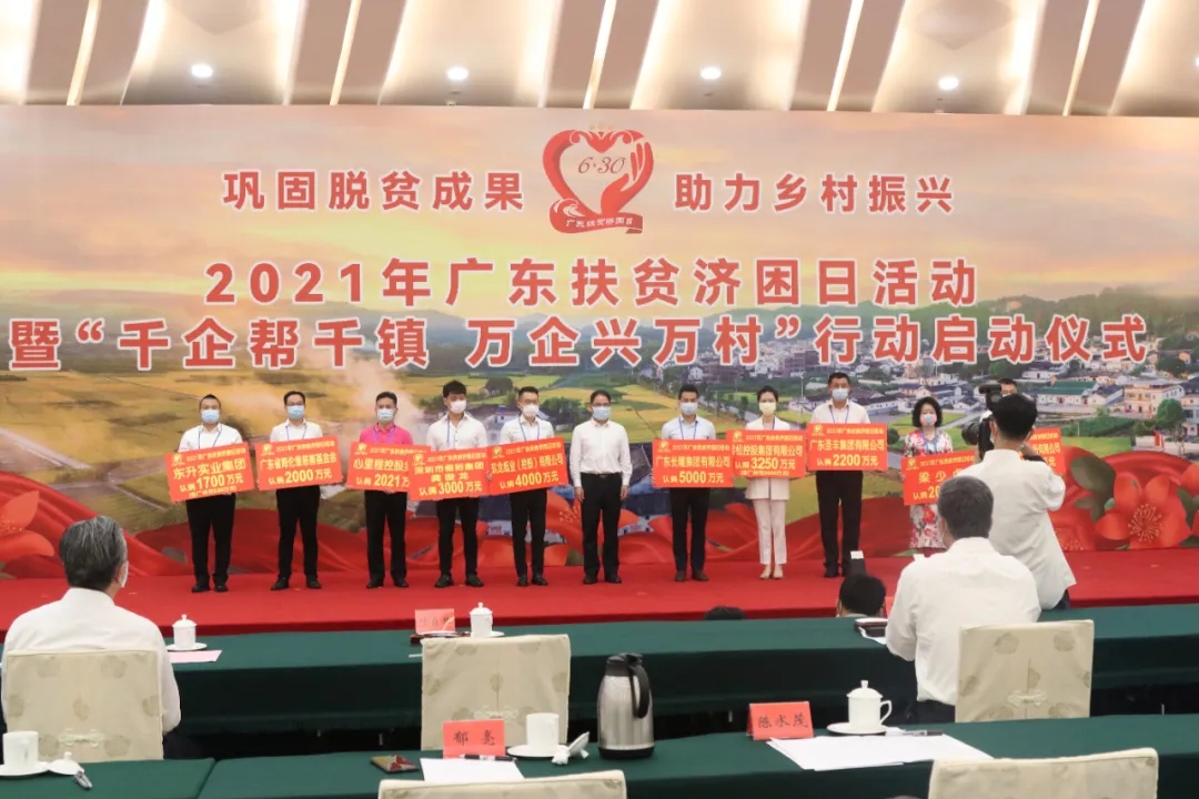 6月30日,2021年廣東扶貧濟困日活動暨“千企幫千鎮(zhèn)、萬企興萬村”行動啟動儀式在廣州舉行。省長馬興瑞,省委常委葉貞琴,省政府秘書長、辦公廳主任葉牛平等領導出席活動,心里程投資集團董事長彭俏奇受邀參加活動,并代表集團上臺舉牌認捐2021萬元,積極響應“千企幫千鎮(zhèn)、萬企興萬村”行動號召,繼續(xù)助力廣東鞏固拓展脫貧攻堅成果,推動鄉(xiāng)村全面振興。