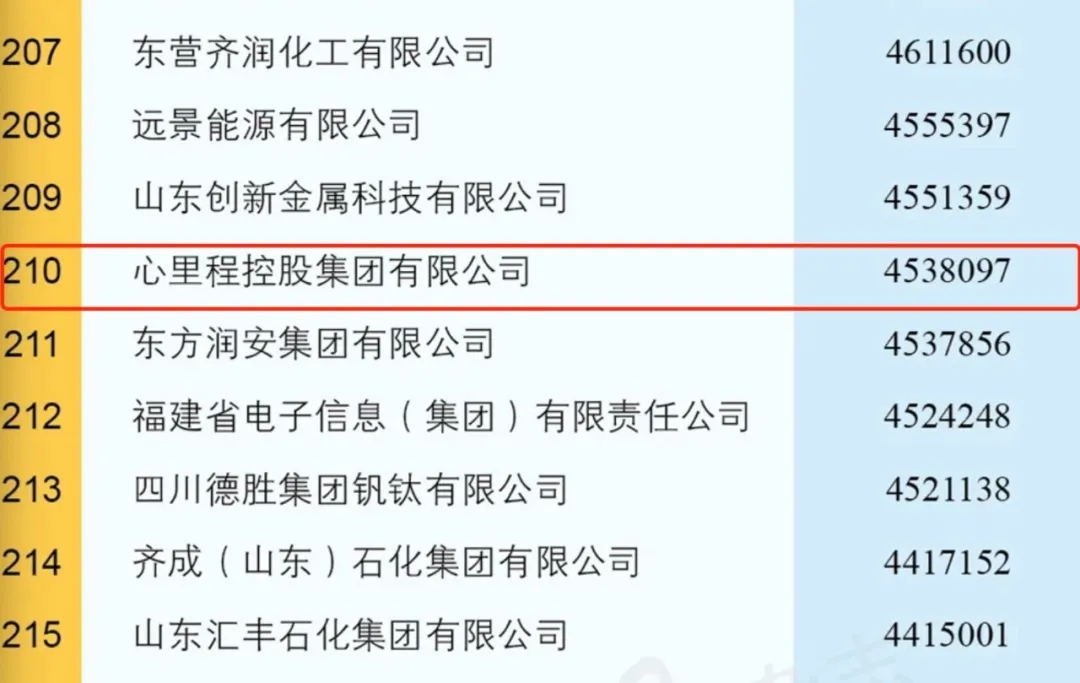 心里程集團名列中國制造業(yè)企業(yè)500強第210位