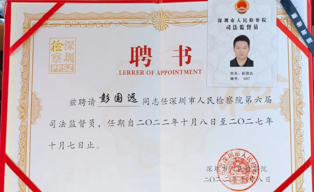 彭國遠(yuǎn)董事長表示,非常感謝深圳市人民檢察院的信任與重托,獲聘第六屆司法監(jiān)督員,??這不只是一份榮譽(yù),更是一份責(zé)任。在今后的工作中,將進(jìn)一步加強(qiáng)對法律知識的學(xué)習(xí),提高法治素養(yǎng),積極建言獻(xiàn)策,以高度的責(zé)任感認(rèn)真履職盡責(zé),充分發(fā)揮好監(jiān)督員的橋梁作用和監(jiān)督作用。一方面,廣泛聽取社會各界對改進(jìn)和完善檢察院工作的中肯意見和建議,另一方面,積極向社會傳遞檢察院的聲音,增進(jìn)社會各界對檢察院工作的認(rèn)同理解。