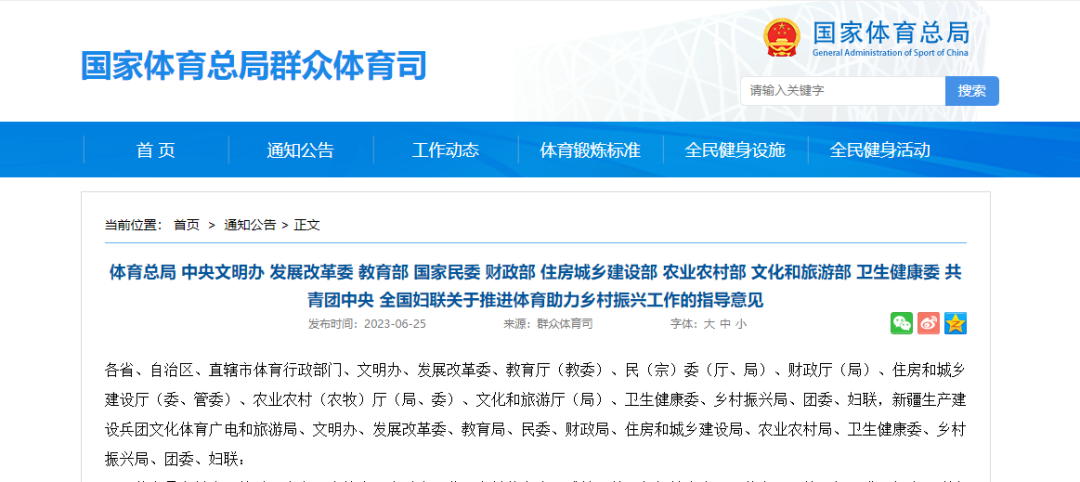 近日,國家體育總局等十二部委印發(fā)了《關(guān)于推進體育助力鄉(xiāng)村振興工作的指導(dǎo)意見》(以下簡稱《意見》),協(xié)力推進體育助力鄉(xiāng)村振興工作。
