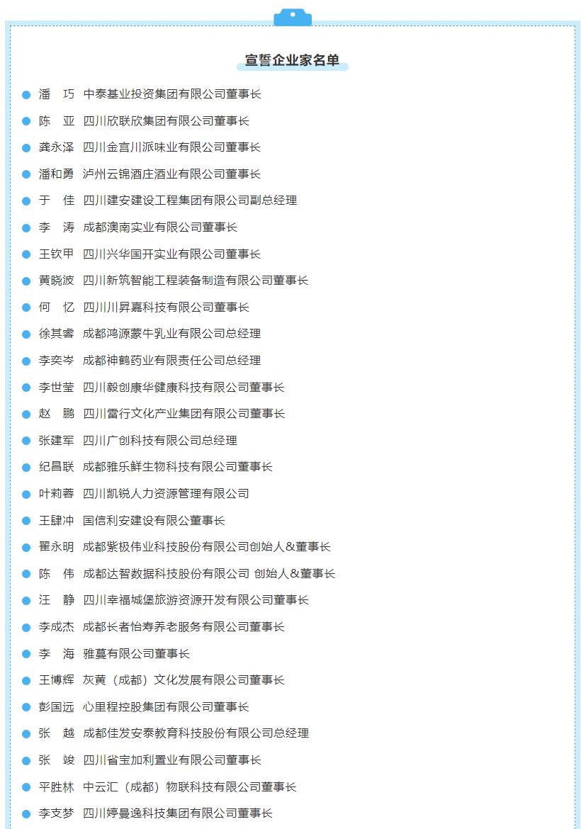 四川省委統(tǒng)戰(zhàn)部副部長張榮,四川日報報業(yè)集團黨委書記、董事長陳嵐出席峰會并致辭。共青團四川省委副書記蔣亭,四川省經(jīng)濟合作局二級巡視員紀云文,四川日報報業(yè)集團黨委委員、副總經(jīng)理徐文禮,川商雜志社總編輯、總經(jīng)理王仁剛,四川省委統(tǒng)戰(zhàn)部宣傳文化處副處長黃伊,四川省經(jīng)濟合作局國內(nèi)合作處副處長駱星林,四川省青年企業(yè)家協(xié)會秘書長康嚴藝出席峰會。