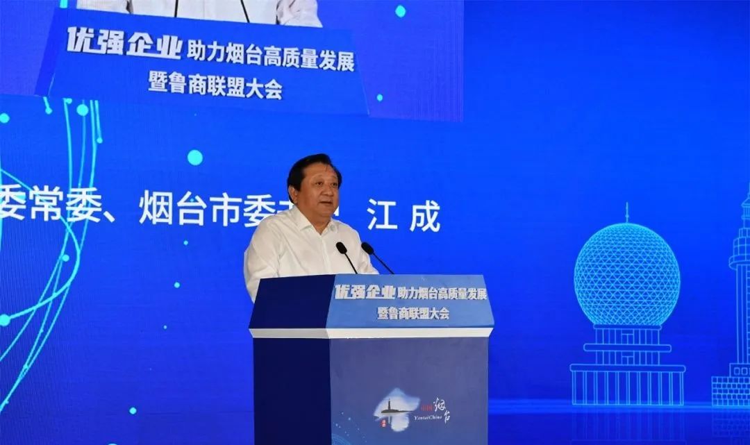 全國工商聯(lián)常委、魯商聯(lián)盟會會長、廣東圣豐集團(tuán)董事長江南,省委常委、煙臺市委書記江成,省人大常委會副主任、省工商聯(lián)主席、省總商會會長王隨蓮致辭;市委副書記、市長鄭德雁介紹煙臺經(jīng)濟(jì)社會發(fā)展總體情況;全國工商聯(lián)副主席、魯商聯(lián)盟會名譽會長、香江集團(tuán)董事局主席劉志強,全國政協(xié)委員、創(chuàng)維集團(tuán)創(chuàng)始人、開沃集團(tuán)董事長黃宏生發(fā)言;全國政協(xié)委員、全聯(lián)房地產(chǎn)商會榮譽會長、廣東省總商會名譽會長、廣州富力地產(chǎn)股份有限公司董事長兼總裁張力,市領(lǐng)導(dǎo)朱秀香、于永信、高建廣、于鋒、李京波出席,副市長韓耀東主持。
