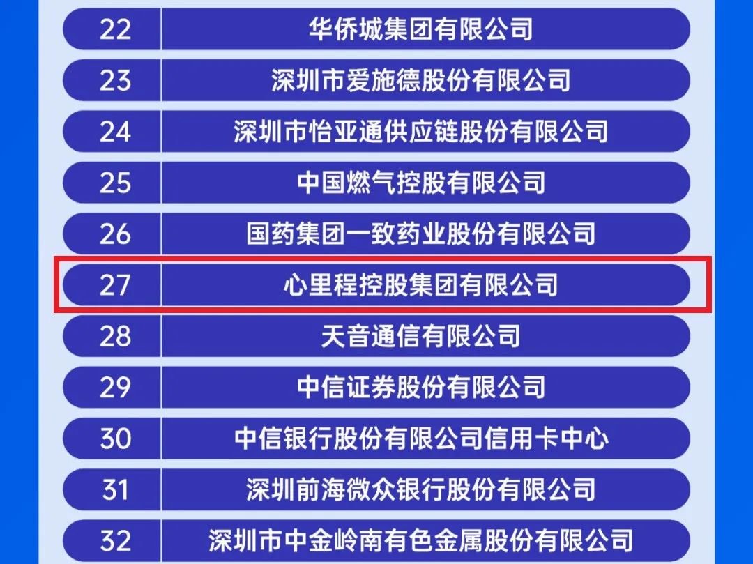 9月25日,深圳市企業(yè)聯(lián)合會、深圳市企業(yè)家協(xié)會(簡稱深圳企聯(lián))正式發(fā)布“2023深圳企業(yè)500強榜單”及《2023深圳500強企業(yè)發(fā)展報告》。心里程控股集團入選“2023深圳500強企業(yè)”第27位,較2022年上升2位,充分凸顯了心里程集團強勁的綜合實力及品牌影響力。