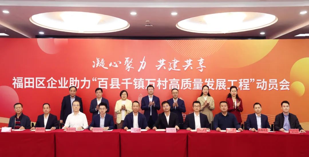 12月1日,福田區(qū)在全市率先召開企業(yè)助力“百千萬工程”動員會,廣泛調(diào)動各類企業(yè)等市場主體深度參與“百千萬工程”,為全省、全市在縣區(qū)級引導(dǎo)鼓勵企業(yè)助力“百千萬工程”作出先行探索。福田區(qū)委書記黃偉等領(lǐng)導(dǎo),區(qū)紀(jì)委監(jiān)委,區(qū)委區(qū)府辦、組織部、宣傳部、統(tǒng)戰(zhàn)部、政法委,區(qū)“百千萬工程”指揮辦負(fù)責(zé)同志,區(qū)人大辦、政協(xié)辦、區(qū)委編辦,區(qū)發(fā)改局、教育局、科創(chuàng)局、工信局、民政局、司法局、財政局、人力資源局、住建局、水務(wù)局、文廣旅體局、衛(wèi)健局、應(yīng)急局、統(tǒng)計局、金融局、城管和綜合執(zhí)法局、政務(wù)服務(wù)數(shù)據(jù)管理局、城市更新和土地整備局、機(jī)關(guān)事務(wù)局,發(fā)展研究中心、投資推廣和企業(yè)服務(wù)中心、建工署,區(qū)總工會、團(tuán)區(qū)委、區(qū)婦聯(lián)、工商聯(lián),各街道黨工委,市規(guī)自局福田局、市生態(tài)局福田局、市交通局福田局、市市場監(jiān)管局福田局、福田區(qū)稅務(wù)局主要負(fù)責(zé)同志,河套合作區(qū)建設(shè)發(fā)展事務(wù)署、香蜜湖片區(qū)建設(shè)發(fā)展事務(wù)中心、活力城區(qū)建設(shè)事務(wù)中心負(fù)責(zé)同志及各企業(yè)代表出席動員會,廣東心里程置業(yè)集團(tuán)有限公司董事長陳陸代表心里程集團(tuán)出席活動并簽約。