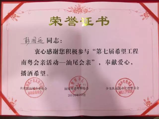 彭國遠(yuǎn)董事長與福田區(qū)政府創(chuàng)建紅嶺教育基金會