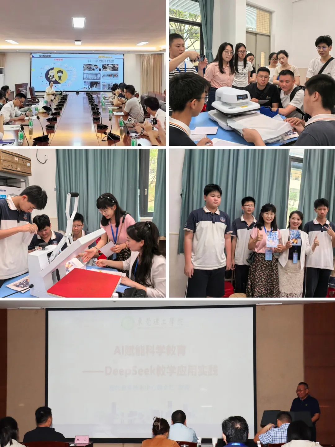 隨后,研修班的學員認真聽取了東莞理工學院現(xiàn)代教育技術中心主任魏文紅教授所作《AI賦能科學教育:Deepseek教學應用實踐》專題報告,并集體參觀東莞市厚街湖景中學,通過特色課:《熱轉(zhuǎn)印技術賦能文創(chuàng)作品》、行政講座:《美好教育的假設與探索》、專題講座:《慧創(chuàng)科技教育的實踐探索》的學習交流,在緊張、熱烈而興奮的氣氛中,完成了第一天的研修課程。
