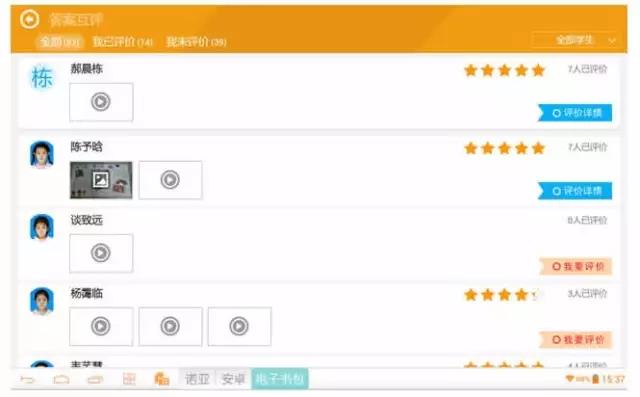 利用電子書(shū)包的互評(píng)功能,無(wú)論是在課堂上,還是在課后,先完成任務(wù)的學(xué)生可以立即看到其他已完成學(xué)生的作品,并對(duì)他們的作品進(jìn)行批注、評(píng)星和評(píng)語(yǔ),進(jìn)行不同思維的碰撞和交流,形成更多生生間同時(shí)進(jìn)行的深度互動(dòng),同時(shí)孩子也能站在“學(xué)生”和“教師”兩個(gè)角度評(píng)價(jià)學(xué)習(xí)任務(wù),讓學(xué)生對(duì)學(xué)習(xí)任務(wù)的理解更加深刻,高效利用了課堂時(shí)間,增加學(xué)生間交流的渠道和維度。