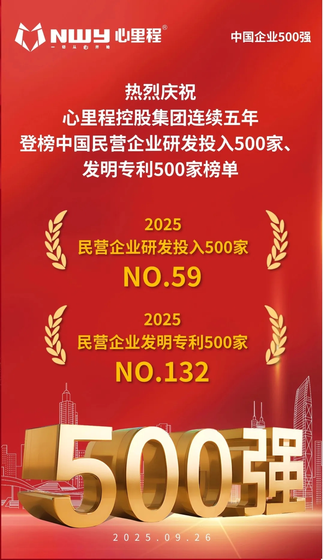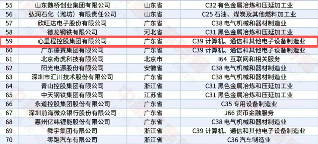 心里程集團(tuán)榮登2025民營企業(yè)研發(fā)投入500家第59位