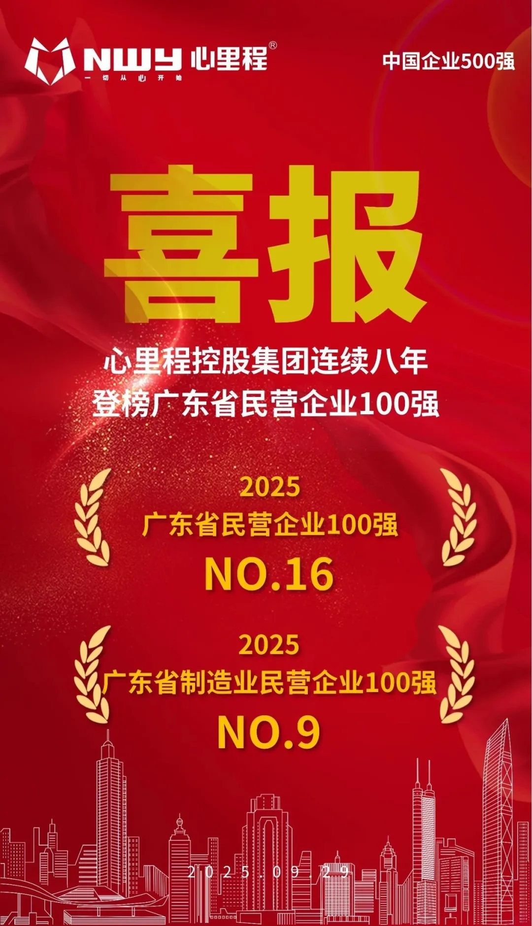 心里程集團(tuán)榮登2025廣東省制造業(yè)民營企業(yè)100強(qiáng)第9位