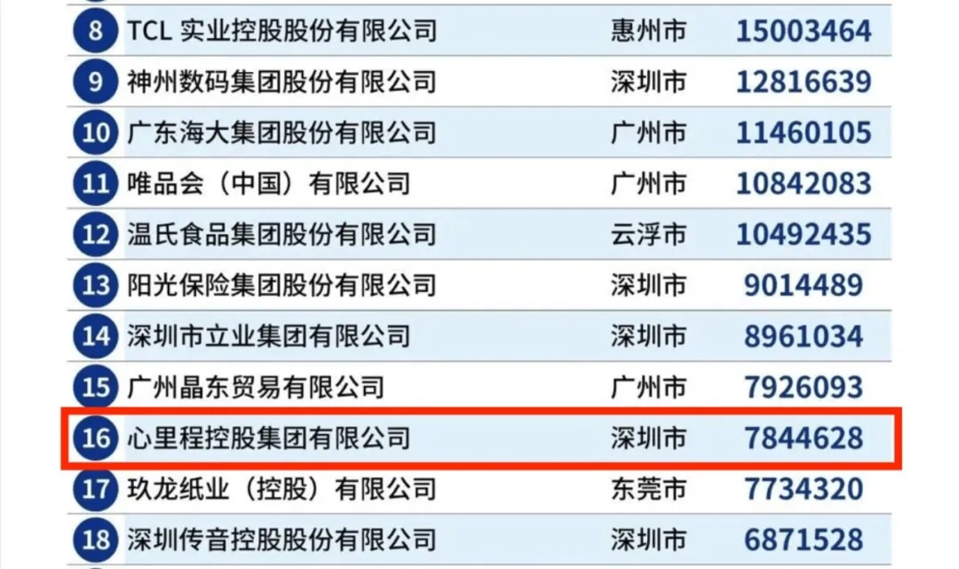 心里程集團(tuán)榮登2025廣東省民營企業(yè)100強(qiáng)第16位