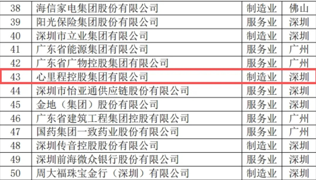 心里程集團(tuán)榮登“2025廣東企業(yè)500強(qiáng)”榜單第43位