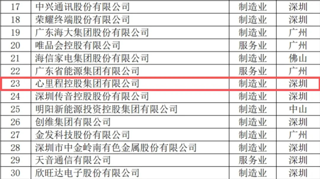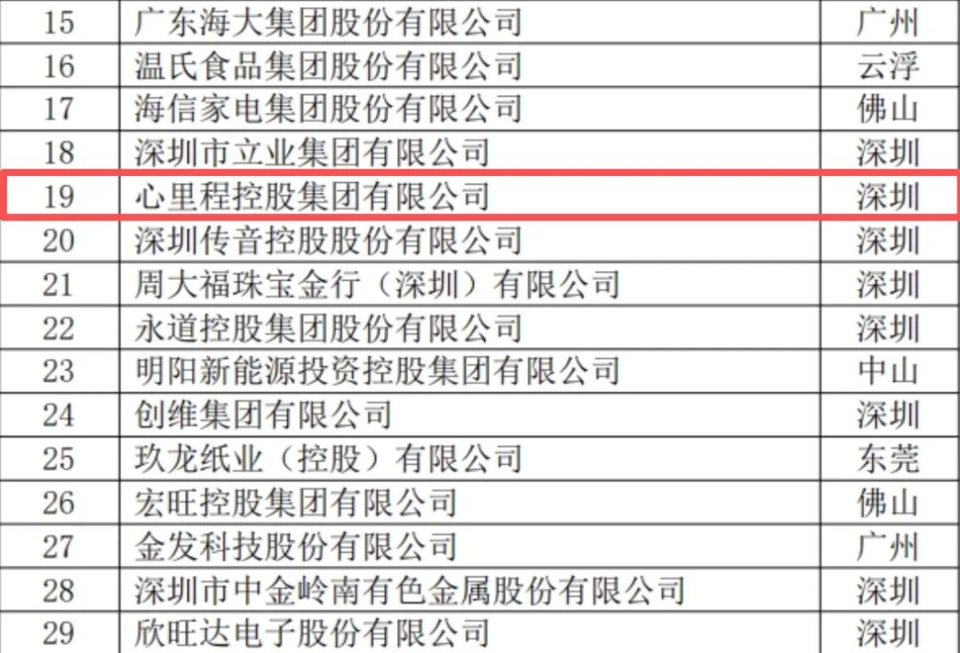 心里程集團(tuán)榮登“廣東民營企業(yè)100強(qiáng)”榜單第17位