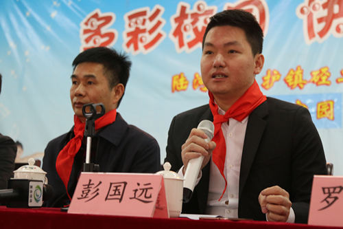 硁二小學張洪透校長在致辭中高度贊賞了彭國遠董事長致富不忘桑梓,熱心公益事業(yè),為家鄉(xiāng)教育事業(yè)謀發(fā)展的善舉。他表示,硁二小學將以此活動作為新的教育契機,認真教導學生學習心里程奉獻社會、回饋家鄉(xiāng)的精神,讓學生真正做到常懷感恩之心、常懷奮起之志,樹立遠大理想,發(fā)奮刻苦學習,將社會的關愛轉化為進步的動力源泉。