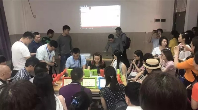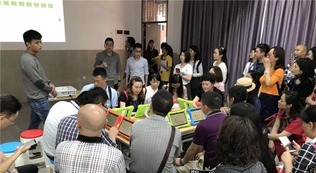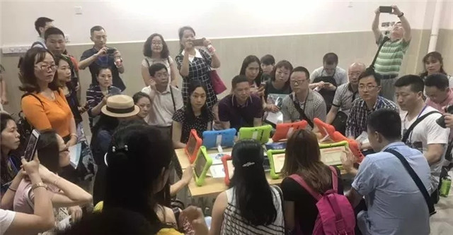 5月7日,成都市武侯區(qū)50人校長團到訪深圳市福田區(qū)福苑小學,考察教育信息化建設(shè)。心里程教育集團的工程師們現(xiàn)場為校長們演示“互聯(lián)e課堂”平板電腦的使用方法,并講解特色功能。