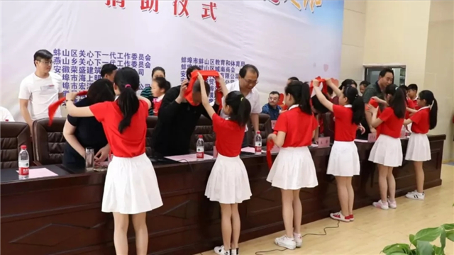 蚌山區(qū)副區(qū)長宋靜、蚌山區(qū)關(guān)工委主任王義、蚌山區(qū)關(guān)工委第二主任許懷遠、蚌山區(qū)教體局書記年禮光、蚌山區(qū)教體局副書記孫彥、燕山鄉(xiāng)副鄉(xiāng)長方同英、蚌山區(qū)城南商會會長張洪玉,以及安徽心里程副總經(jīng)理崔強等企業(yè)代表出席了本次活動,并向在校的60多名貧困學生現(xiàn)場捐助了現(xiàn)金以及書包、筆記本等學習用品。