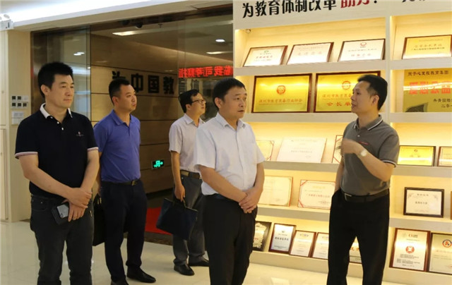 荊州區(qū)教育督導(dǎo)室主任成先平、教育信息化中心主任唐壽云、招商局副局長等赴四川省廣安市實地調(diào)研心里程教育信息化方案——心里程“互聯(lián)e課堂”,對心里程集團教育信息化解決方案高度贊賞。