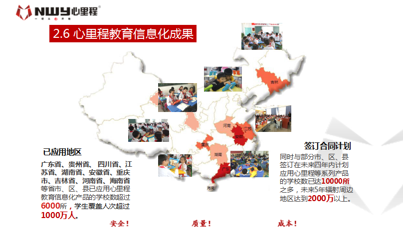 目前心里程教育信息化整體解決方案已在全國6000多所學校,