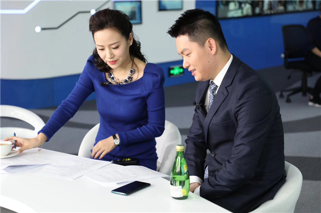 彭國遠董事長與主持人確認節(jié)目錄制相關事宜