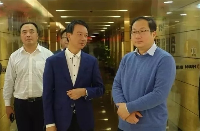 彭錦環(huán)總裁(左一)陪同劉闖書(shū)記(右一)參觀心里程集團(tuán)