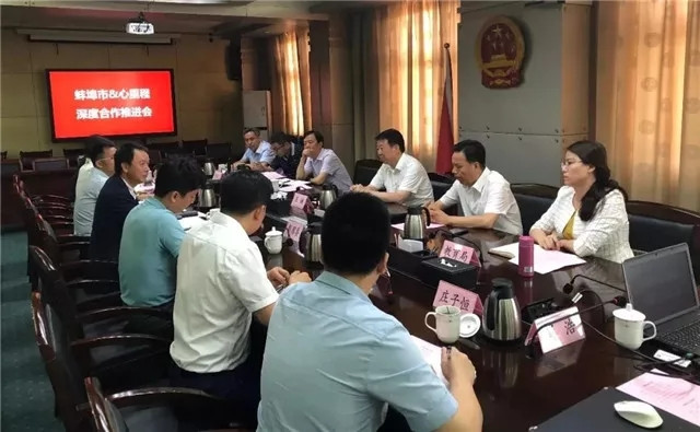 ?2018年6月12-13日,應(yīng)安徽省蚌埠市委副書記、市長王誠的邀請(qǐng),心里程控股集團(tuán)董事、總裁彭錦環(huán)率隊(duì)赴蚌埠進(jìn)行考察,并參加了王誠市長主持召開的“蚌埠市&心里程深度合作推進(jìn)會(huì)”。