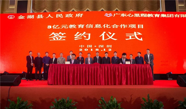期間,江蘇省淮安市金湖縣人民政府與深圳市教育裝備行業(yè)協(xié)會、心里程集團分別就智慧教育小鎮(zhèn)項目、教育信息化項目舉行了隆重的戰(zhàn)略合作項目簽約儀式。金湖縣政府將與深圳市教育裝備行業(yè)協(xié)會、心里程集團合力打造智慧教育小鎮(zhèn),并與心里程集團簽訂3億元教育信息化訂單。