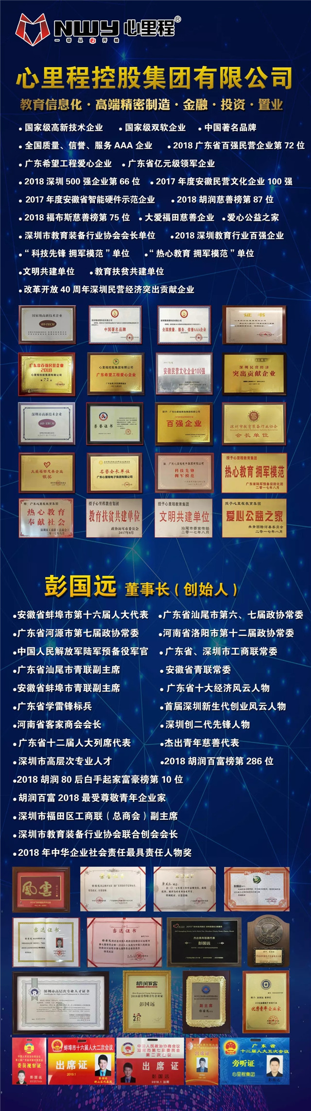 歷經(jīng)十余年的發(fā)展和沉淀,目前心里程集團(tuán)已成為擁有四個(gè)集團(tuán)子公司,數(shù)十家控股參股公司的百億企業(yè),產(chǎn)業(yè)涉及教育信息化、高端精密制造、投資、置業(yè)等領(lǐng)域,并榮獲了“國家級高新技術(shù)企業(yè)”、“國家級雙軟企業(yè)”、“2018年廣東省百強(qiáng)民營企業(yè)”、“改革開放40周年深圳民營經(jīng)濟(jì)突出貢獻(xiàn)企業(yè)”等諸多榮譽(yù)稱號。