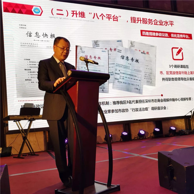 會議由福田區(qū)委統(tǒng)戰(zhàn)部副部長、工商聯(lián)黨組書記、常務(wù)副主席石佑君主持。區(qū)工商聯(lián)主席、總商會會長林曉輝作工作報告。大會回顧了區(qū)工商聯(lián)過去一年的工作并部署新一年重點工作。同時,為表揚先進,弘揚善舉,傳承文明,大會還對25 家愛心企業(yè)進行了通報表揚。心里程控股集團被授予“愛心企業(yè)”榮譽稱號。