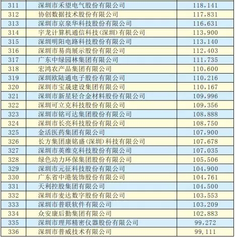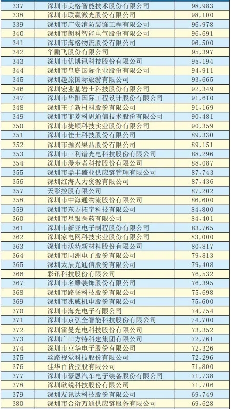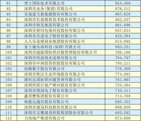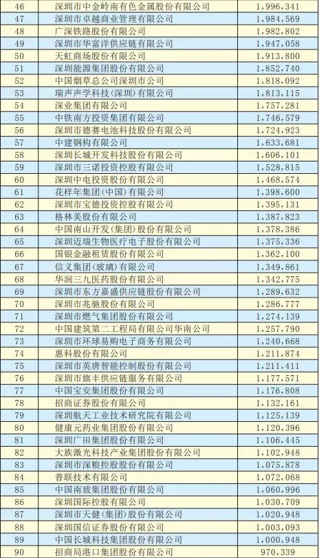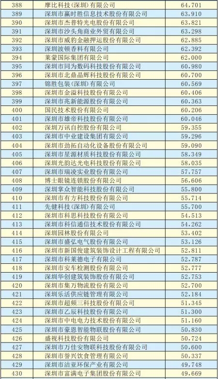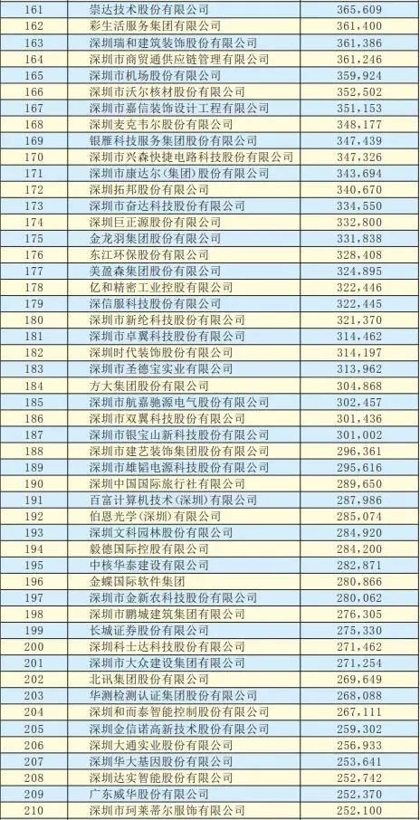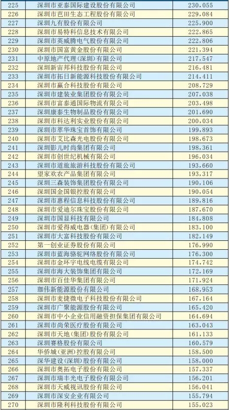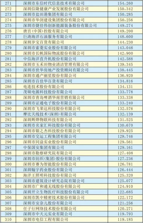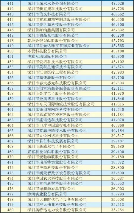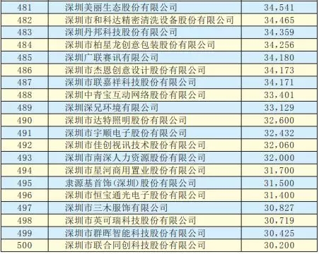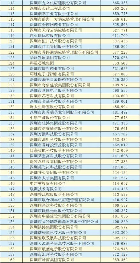 2019深圳500強(qiáng)企業(yè)名單