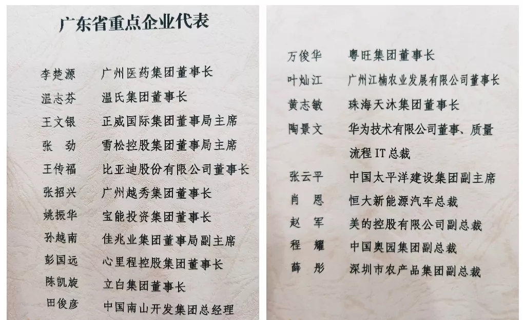 受到貴州省委書記、省人大常委會主任孫志剛,廣東省委副書記、省長馬興瑞等領(lǐng)導(dǎo)親切接見的廣東省重點企業(yè)代表名單