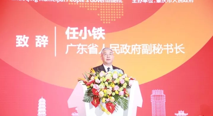 廣東省人民政府副秘書(shū)長(zhǎng)任小鐵致辭。他表示,“肇慶金秋”作為展示肇慶發(fā)展成果的重要平臺(tái),不僅是肇慶推介投資的窗口,也是企業(yè)尋求合作的橋梁,更是有識(shí)之士交流思想的重要平臺(tái)。希望肇慶繼續(xù)全面深化與大灣區(qū)各城市的互利合作,加快推動(dòng)高質(zhì)量發(fā)展。歡迎廣大客商投資大灣區(qū),投資廣東,投資肇慶,成為粵港澳大灣區(qū)高質(zhì)量發(fā)展的見(jiàn)證者、參與者、受益者。省政府將一如既往關(guān)心、支持肇慶全方位參與粵港澳大灣區(qū)建設(shè),支持各位商界精英選擇肇慶、投資肇慶、扎根肇慶。
