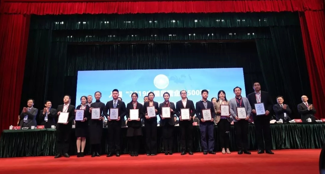 彭國遠董事長(左四)上臺接受2019年“中國民營企業(yè)500強”授牌