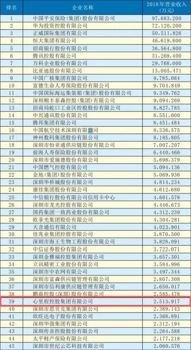 ●由深圳市企業(yè)聯(lián)合會、深圳市企業(yè)家協(xié)會(以下簡稱深圳企聯(lián))編撰的《2019深圳500強(qiáng)企業(yè)發(fā)展報告》即將正式對外發(fā)布。《2019深圳500強(qiáng)企業(yè)發(fā)展報告》中的“2019深圳500強(qiáng)企業(yè)”名單于7月30日在《深圳商報》予以公示,心里程控股集團(tuán)排名第39位,比較2018年前進(jìn)了27名。
