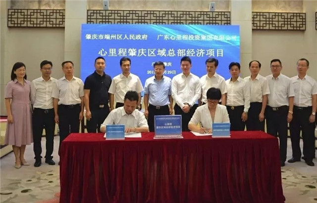 ●7月29日,心里程集團(tuán)與肇慶端州區(qū)人民政府項目合作簽約儀式在端州區(qū)機(jī)關(guān)大樓隆重舉行。