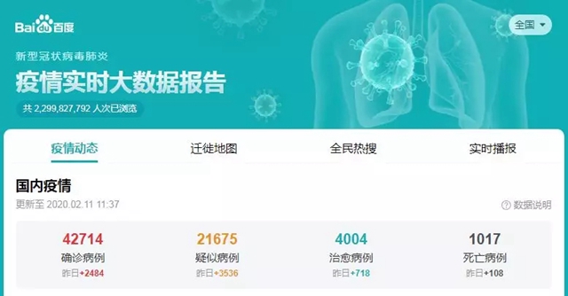 新型冠狀病毒感染肺炎疫情,牽動(dòng)著全國(guó)人民的心。1月27日,習(xí)主席作出重要指示,要求各級(jí)黨組織和廣大黨員干部團(tuán)結(jié)帶領(lǐng)廣大人民群眾堅(jiān)決貫徹落實(shí)黨中央決策部署,緊緊依靠人民群眾堅(jiān)決打贏疫情防控阻擊戰(zhàn)。雖然全國(guó)人民都已經(jīng)發(fā)動(dòng)起來(lái),積極參與到疫情防控中。但百度“疫情實(shí)時(shí)大數(shù)據(jù)報(bào)告”上不斷增長(zhǎng)的疫情動(dòng)態(tài)數(shù)據(jù)顯示,當(dāng)前的疫情防控形勢(shì)依然十分嚴(yán)峻。截至2020年2月11日11:37,全國(guó)確診病例達(dá)到42714人,疑似病例21675人,治愈病例4004人,死亡病例1017人。