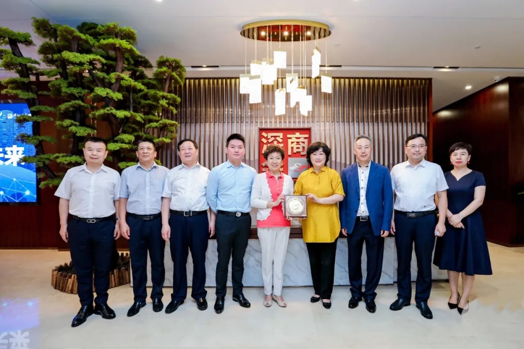 彭國遠(yuǎn)董事長(左四)與青島市領(lǐng)導(dǎo)、深商會領(lǐng)導(dǎo)合影